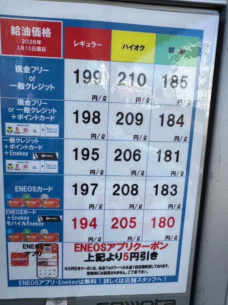 レンタカー道中でガソリンスタンドを何件かみかけましたが、みなさん値段の箇所が〇〇〇円