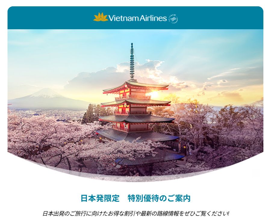 ベトナム航空より「日本発限定 特別優待のご案内」という案内が届きました。